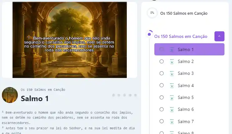 Você recebe acesso a área de membros, lá vai ter cada Salmo em vídeo, e a letra do salmo completa na descrição.